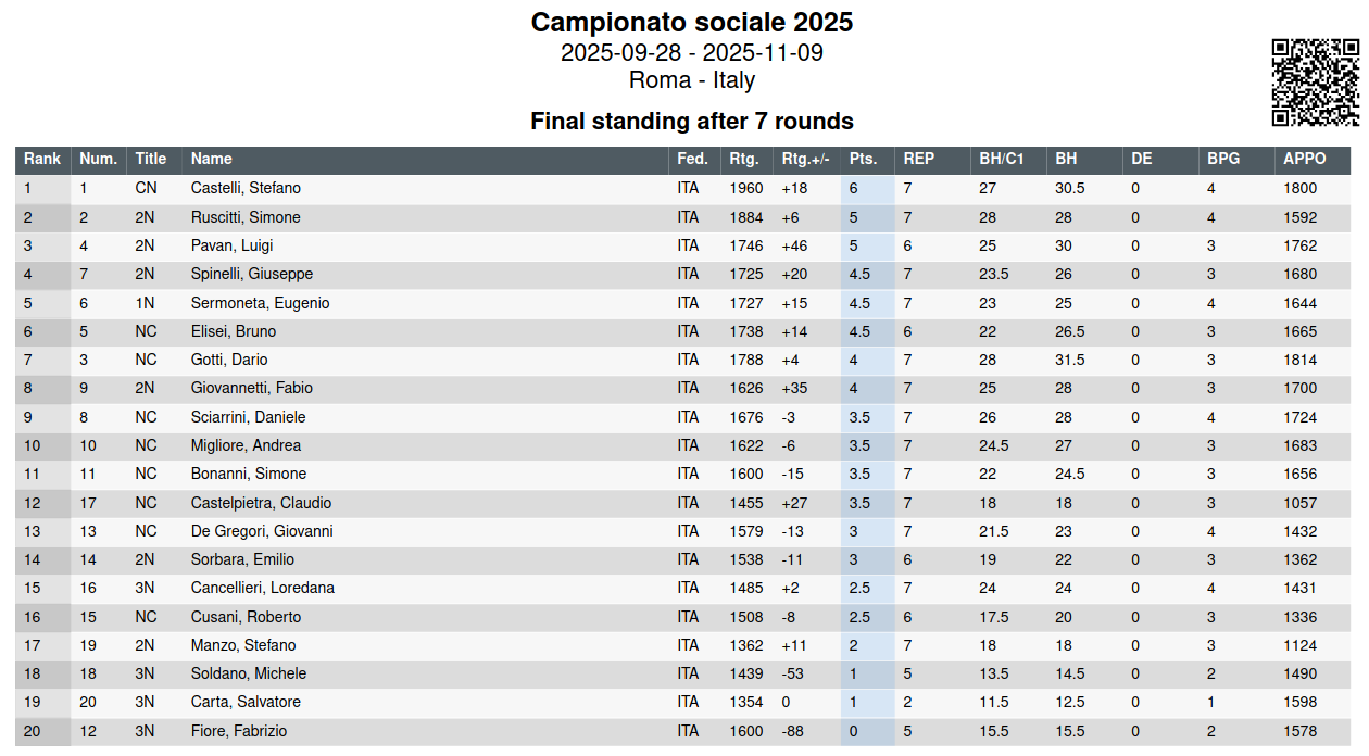 Il Campionato Sociale di Palocco Scacchi, iniziato il 28 settembre è terminato oggi.